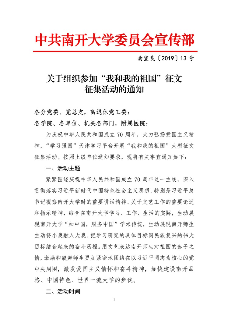 关于组织参加“我和我的祖国”征文征集活动的通知