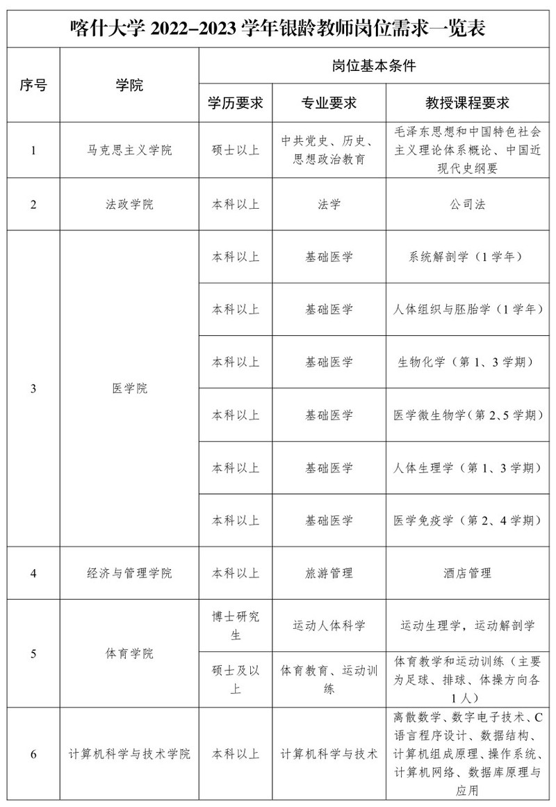 根据教育部办公厅《关于做好2022—2023学年高校银龄教师支援西部计划有关实施工作的通知》,我校银龄教师对口支援新疆喀什大学,现就有关事项通知如下。