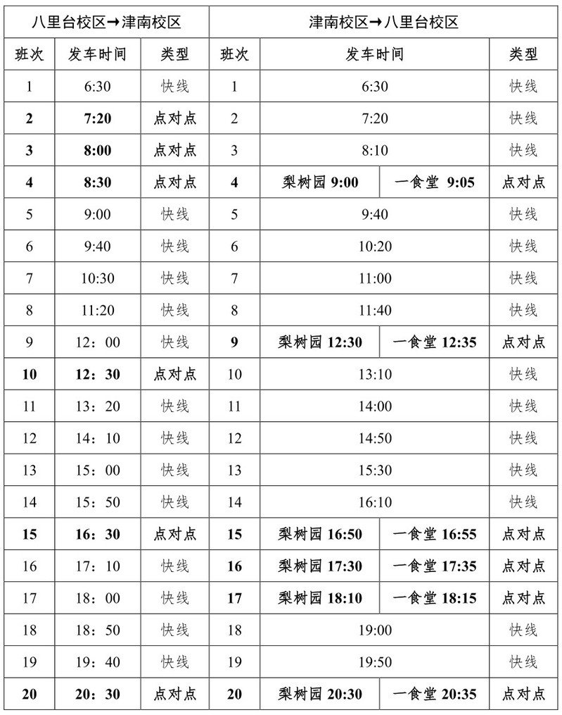 6月28日(周三)至年8月23日(周三),泰达与八里台、津南校区班车按照假期班车方案运行。如遇临时调整,另行通知。
