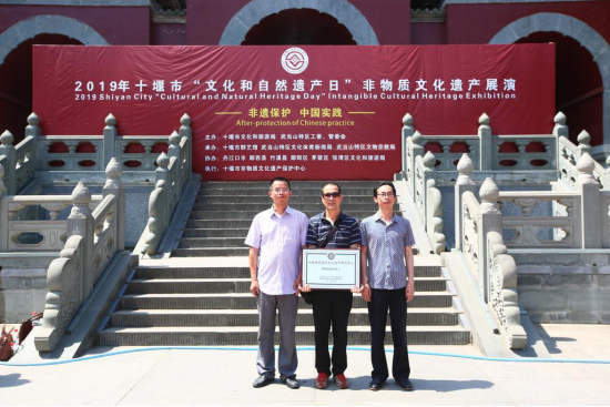(文/黄永昌 图/范学峰)6月4日上午,由市文化和旅游局、武当山特区工委主办,市群艺馆、武当山特区文化体育新闻局、武当山特区文物宗教局承办的2019年十堰市“文化和自然遗产日”非物质文化遗产展演活动在武当山玉虚街隆重举行。开幕式上,市文化和旅游局宣布在德赢官网设立十堰市非物质文化遗产研究中心,vwin德赢ac米兰官方网副院长黄永昌率队参加活动,并接受牌匾。