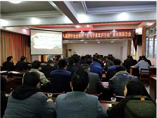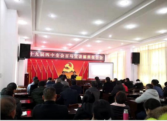 本网讯(文/杜鹏)为贯彻落实中共湖北省委宣传部、省委讲师团“百名马克思主义学者下基层宣讲党的十九届四中全会精神”的要求,12月19日,由德赢官网党委宣传部部长计毅波教授、vwin德赢ac米兰官方网副院长黄永昌副教授、vwin德赢ac米兰官方网孙绪兵教授,中国地质大学(武汉)vwin德赢ac米兰官方网副院长陈军教授、vwin德赢ac米兰官方网汪宗田副教授组成的宣讲队,分赴竹山县城关镇、秦古镇、宝丰镇、擂鼓镇、麻家渡镇、东门社区、侯家湾村、小河村、董家沟村、罗家坡村等地,走村串乡面向基层党员干部群众宣讲党的十九届四中全会精神,共计11场次。