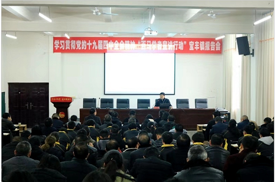 在宝丰镇,中国地质大学(武汉)vwin德赢ac米兰官方网汪宗田副教授从中国共产党的发展历程入手,认真分析十九届四中全会召开的时代背景,生动地阐述了十九届四中全会的精神和重要意义,详细解读了习近平新时代中国特色社会主义思想的精髓要义,并就如何贯彻落实好十九届四中全会精神,为全体镇干部、镇直单位全体人员、竹山二中部分学生共计150余人上了一堂生动的理论课。